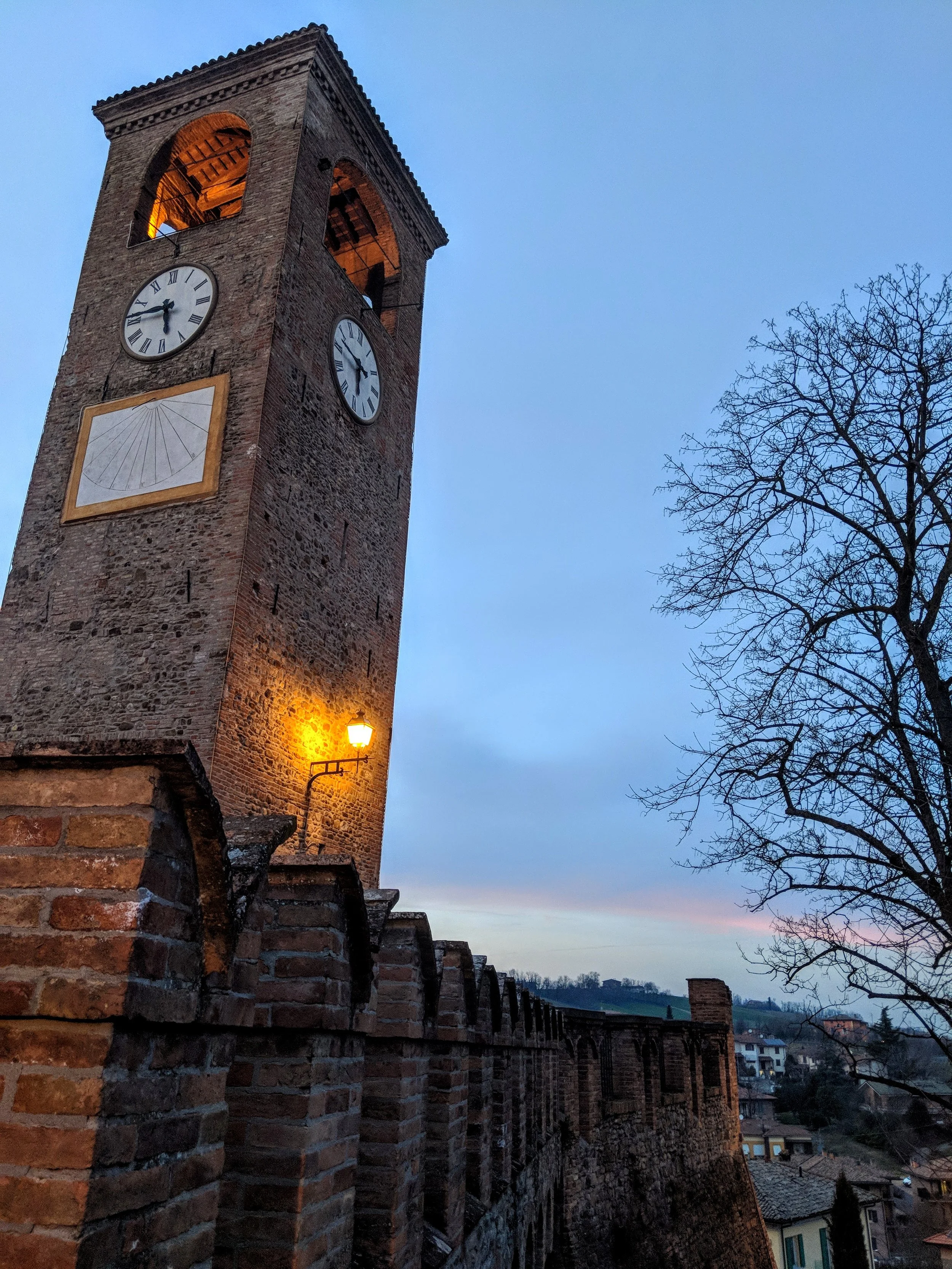 Drive to Castelvetro di Modena (10 minutes). There is a free parking lot at the top of the hill just before you enter the town. Castelvetro is a sweet little hill town with a beautiful clock tower and a few nice restaurants and bars.