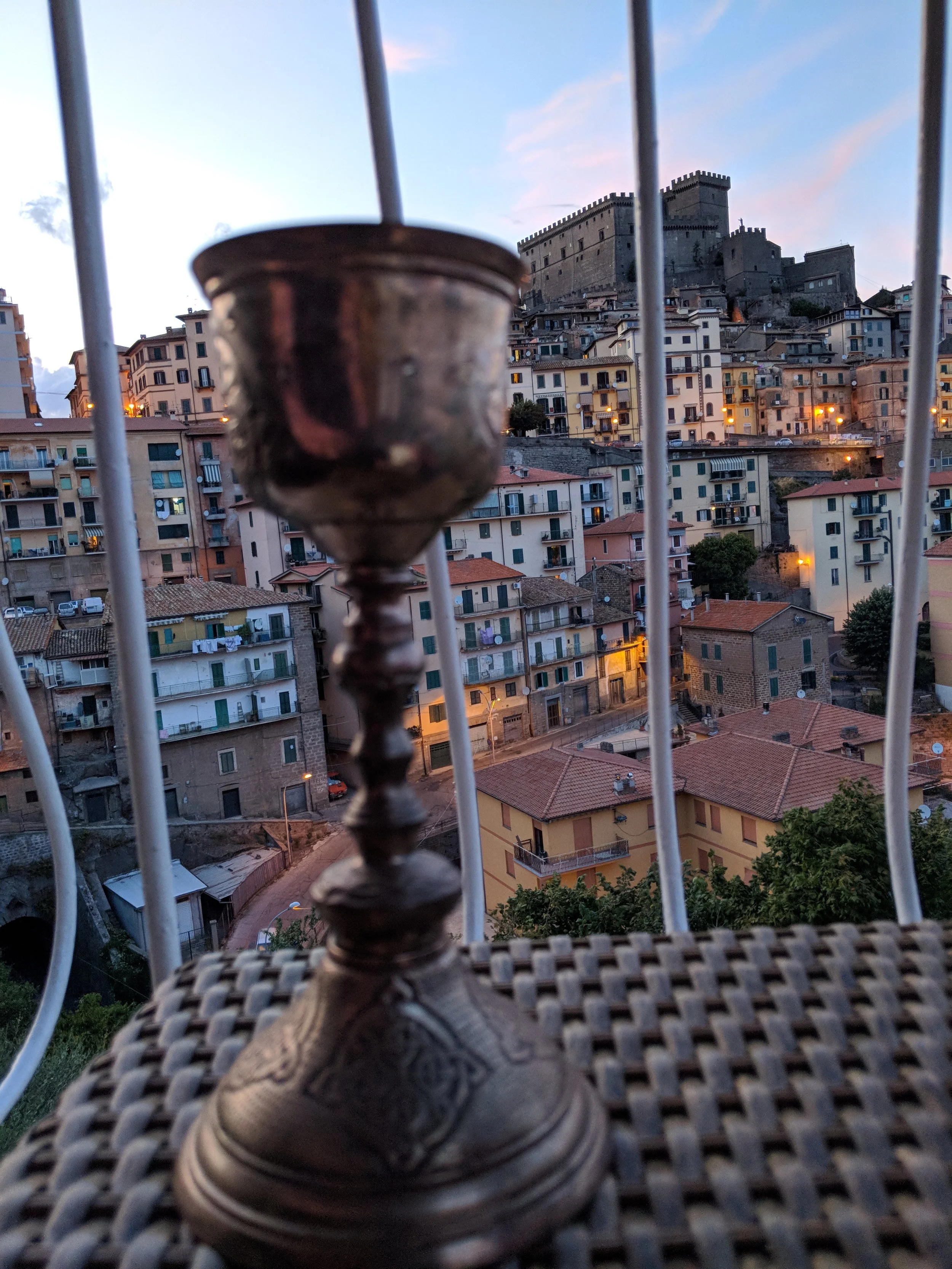 We woke in the morning to the sound of the town’s 8am siren, followed by bells from the cathedral across the valley. In addition to furniture, the previous owner had left us a tremendous amount of random things. Some of it was really helpful — for example, four bottles of prosecco and a bottle of Aperol. Some of it was less than useful, such as a filthy toilet brush, a hair dryer you wear like a hat, and multiple jars of expired food. And all of it was dusty.