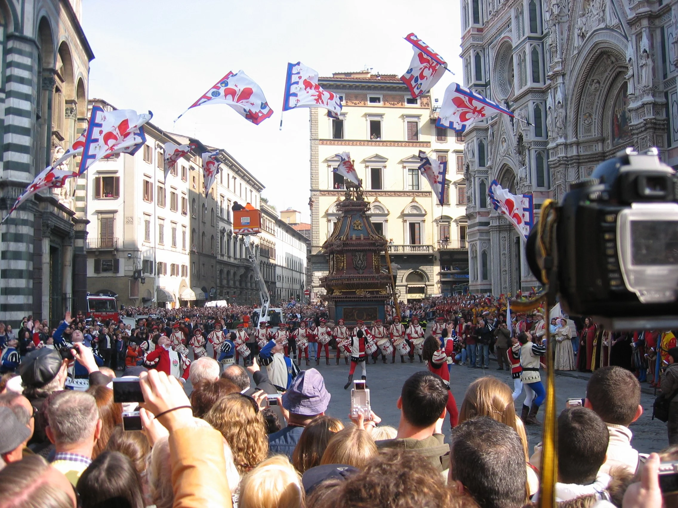 On The ground at Florence’s scoppio del Carro in 2007. (See the balcony in the backgroUnd?)